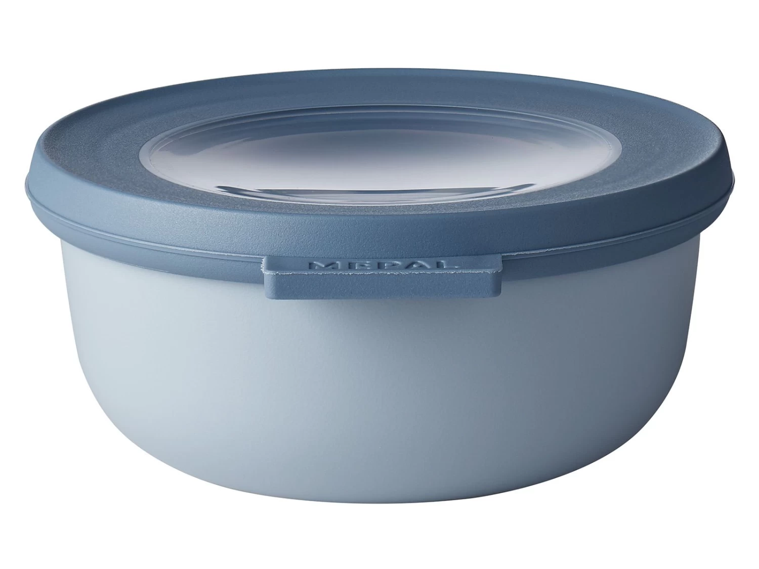 De Mepal multikom Cirqula 2,25 liter – Nordic Blue is perfect voor het bewaren of meenemen van etenswaren. De Cirqula serie van Mepal is speciaal ontwikkeld voor een complete ‘circle of use’. Bewaar eten in de schalen in de koelkast of de vriezer, warm het op in de magnetron (deksel moet worden verwijderd) en serveer je maaltijd in de schaal (direct) op tafel. De Mepal Cirqula multikom is gemaakt van onbreekbaar materiaal. Het transparante venster in de deksel zorgt ervoor dat de inhoud goed zichtbaar is. De innovatieve, soepele deksel is 100% luchtdicht en lekvrij. Hierdoor blijft voedsel langer vers en kan het perfect bewaard en meegenomen worden. De Mepal Cirqula multikommen zijn praktisch en gemakkelijk op te bergen omdat je ze op elkaar en in elkaar weg kunt zetten.