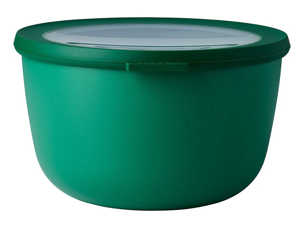Mepal Cirqula multikom 2000 ml in de kleur Vivid green. Deze groene schaal met een inhoud van 2000 ml is perfect voor het bewaren of meenemen van grote porties soep, vlees of maaltijdsalades. De Cirqula serie van Mepal is speciaal ontwikkeld voor een complete ‘circle of use’. Bewaar eten in de schalen in de koelkast of de vriezer, warm het op in de magnetron (deksel moet worden verwijderd) en serveer je maaltijd in de schaal (direct) op tafel. De Mepal Cirqula multikom is gemaakt van robuust materiaal. Het transparante venster in de deksel zorgt ervoor dat de inhoud goed zichtbaar is. De innovatieve, soepele deksel is luchtdicht en lekvrij. Hierdoor blijft voedsel langer vers en kan het perfect bewaard en meegenomen worden. De Mepal Cirqula multikommen zijn praktisch en gemakkelijk op te bergen omdat je ze op elkaar en in elkaar weg kunt zetten.
