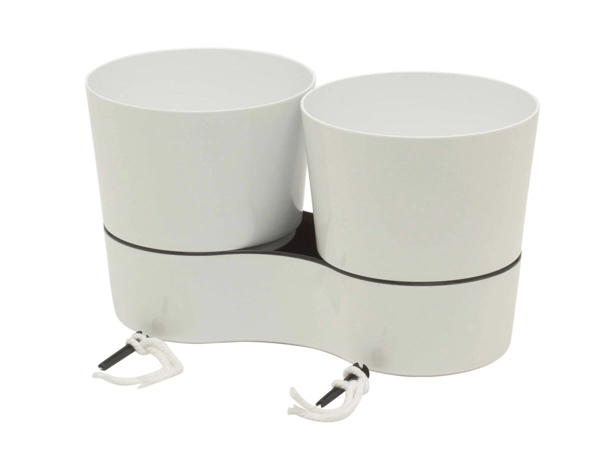 De witte Mepal Hydro Herbs Twin kruidenpot is gemaakt van kunststof en heeft twee plantenpotten met een diameter van 13 cm. In zijn geheel is de Twin kruidenpot 27 cm lang en 15 cm hoog. De pot is een ideale oplossing voor het kweken en vers houden van uw kruiden, zoals munt of basilicum. Het katoenen koord laat de planten zelf de juiste hoeveelheid water uit het reservoir opnemen.