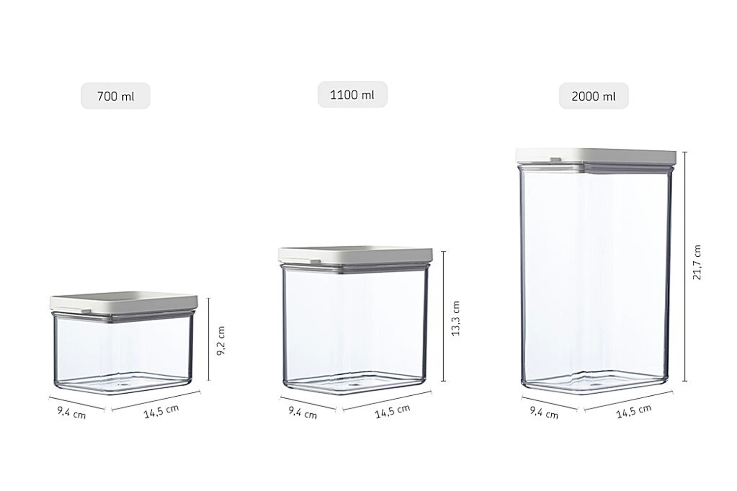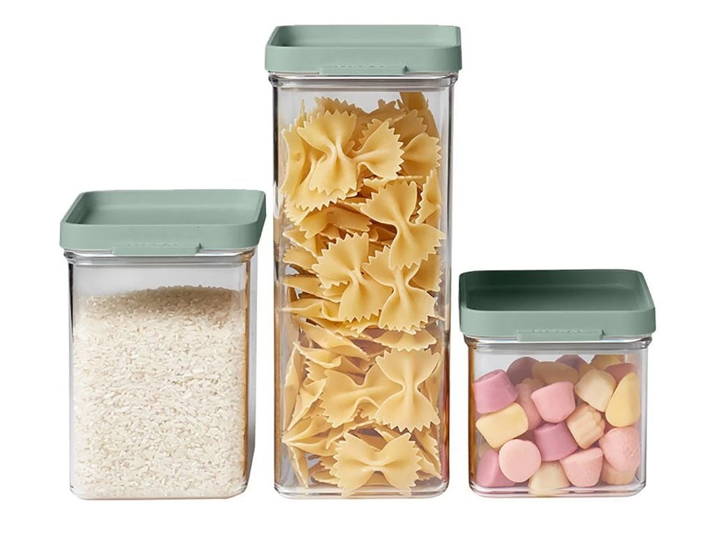 De Omnia 3-delige bewaardozenset in Nordic sage helpt je met het bewaren van alles wat je lekker vindt: van de lekkerste koffie tot overheerlijke pasta en van krakende cornflakes tot een kilozak meel. De set bestaat uit drie dozen, met een inhoud van 700 ml, 1100 ml en 2000 ml. Dankzij de stijlvolle kleuren zijn ze niet alleen ontzettend praktisch in je keukenkastje, maar staan ze ook nog eens prachtig op je aanrecht. De dozen sluiten stuk voor stuk luchtdicht af, zodat jij langer van je etenswaren kunt genieten.