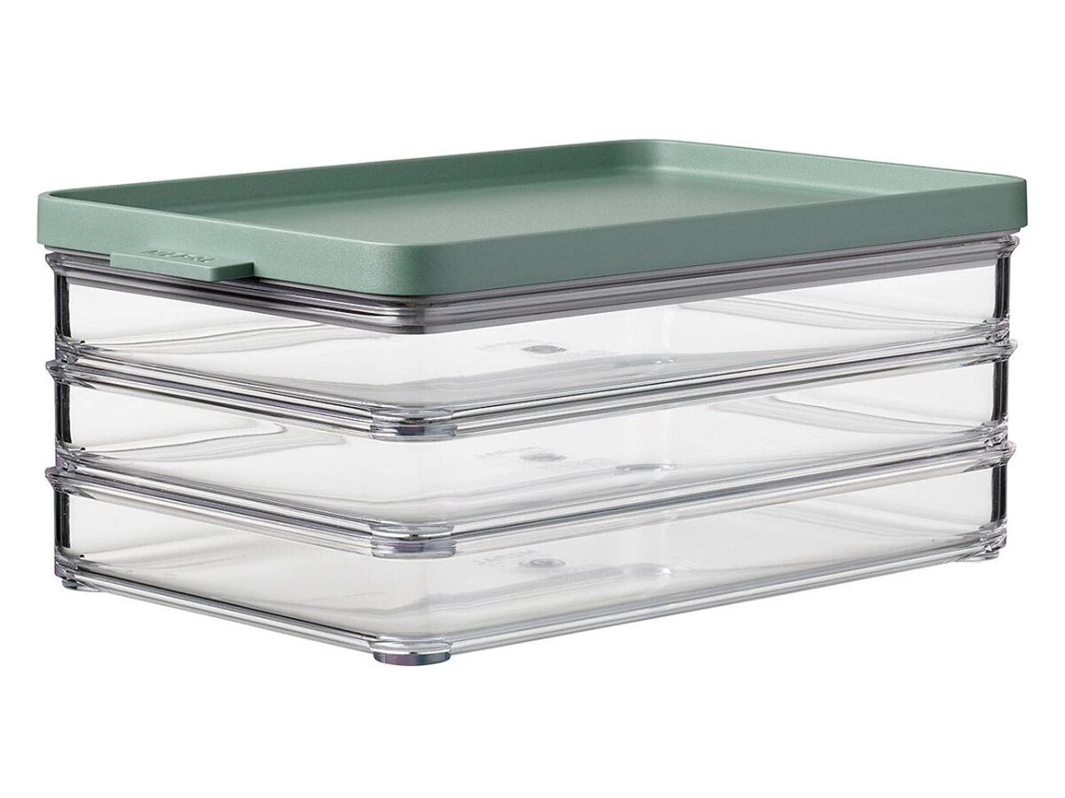 De lagen sluiten perfect op elkaar aan, waardoor de inhoud lekker vers blijft. De bovenste laag is bovendien voorzien van een deksel, waardoor deze volledig lucht- en aromadicht afgesloten wordt.