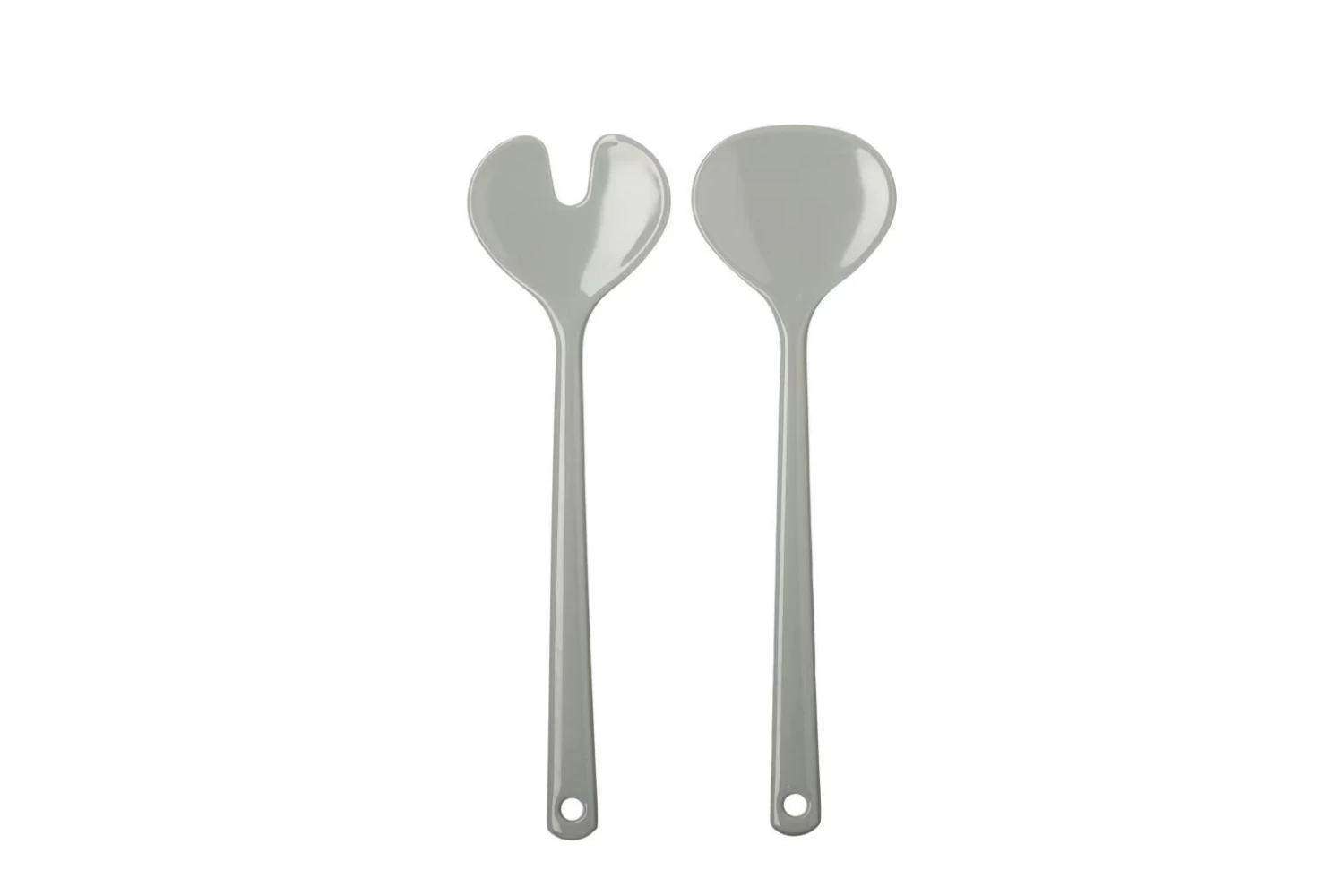 Slacouvert Synthesis in de kleur grey (grijs). Dit 2-delige slabestek bestaat uit een grote slalepel en slavork en past perfect bij de grijze saladeschaal Synthesis 2.5 of 4.0 liter.