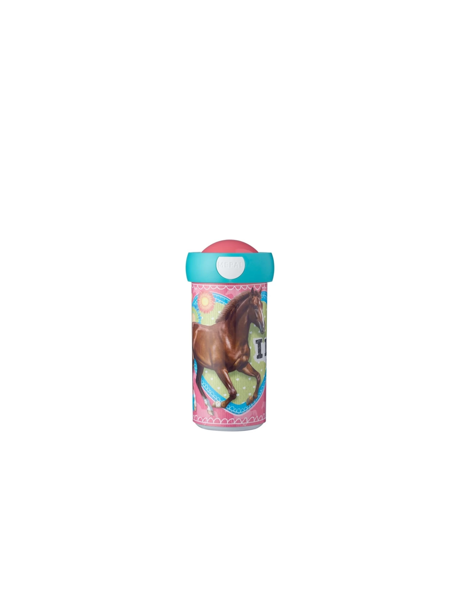 De ideale schoolbeker? Een lekvrije natuurlijk! Kies daarom voor deze schoolbeker van Mepal met paardenprint. De speciale afdichtring in de schroefdeksel zorgt voor een hermetische sluiting. De drinkbeker is makkelijk door kinderhandjes te openen en te sluiten en kan tegen een stootje. Neem de beker mee tijdens een dagje uit, naar de speeltuin, naar zwemles of natuurlijk gewoon mee naar school. Waar je ook naar toe gaat, de schoolbeker van Mepal gaat met je mee! De beker heeft een inhoud van 300 ml en mag na gebruik gewoon in de vaatwasser.