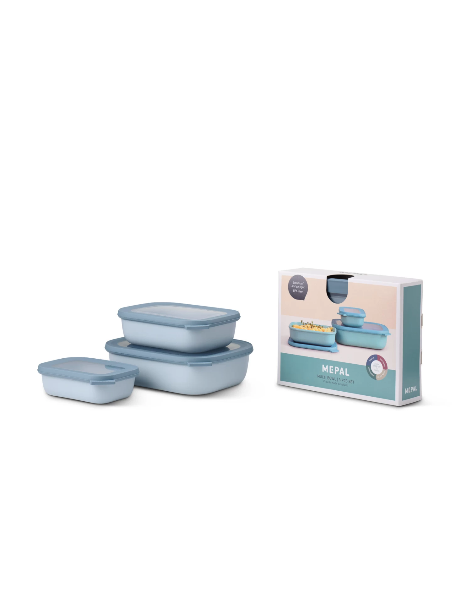 Een lekkere gevulde soep een maaltijdsalade; even opwarmen en je kunt het serveren of verder bereiden! De Mepal Cirqula multikommen set in Nordic blue is er helemaal klaar voor. Heb je broodjes over? Deksel erop en later verder van genieten.